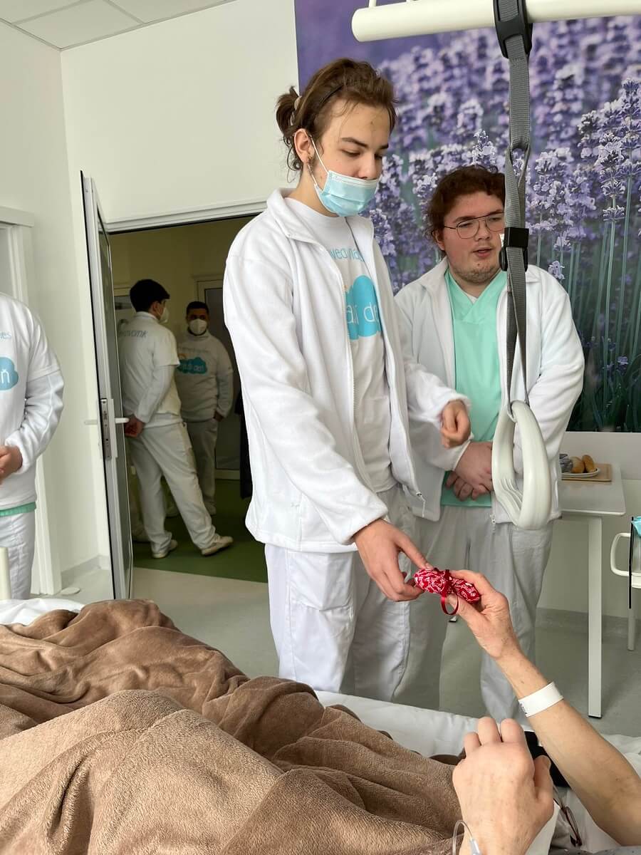 Naši dobrovoľníci, chlapci zo SZŠ obdarovávali naše pacientky na geriatrií a gynekológií.