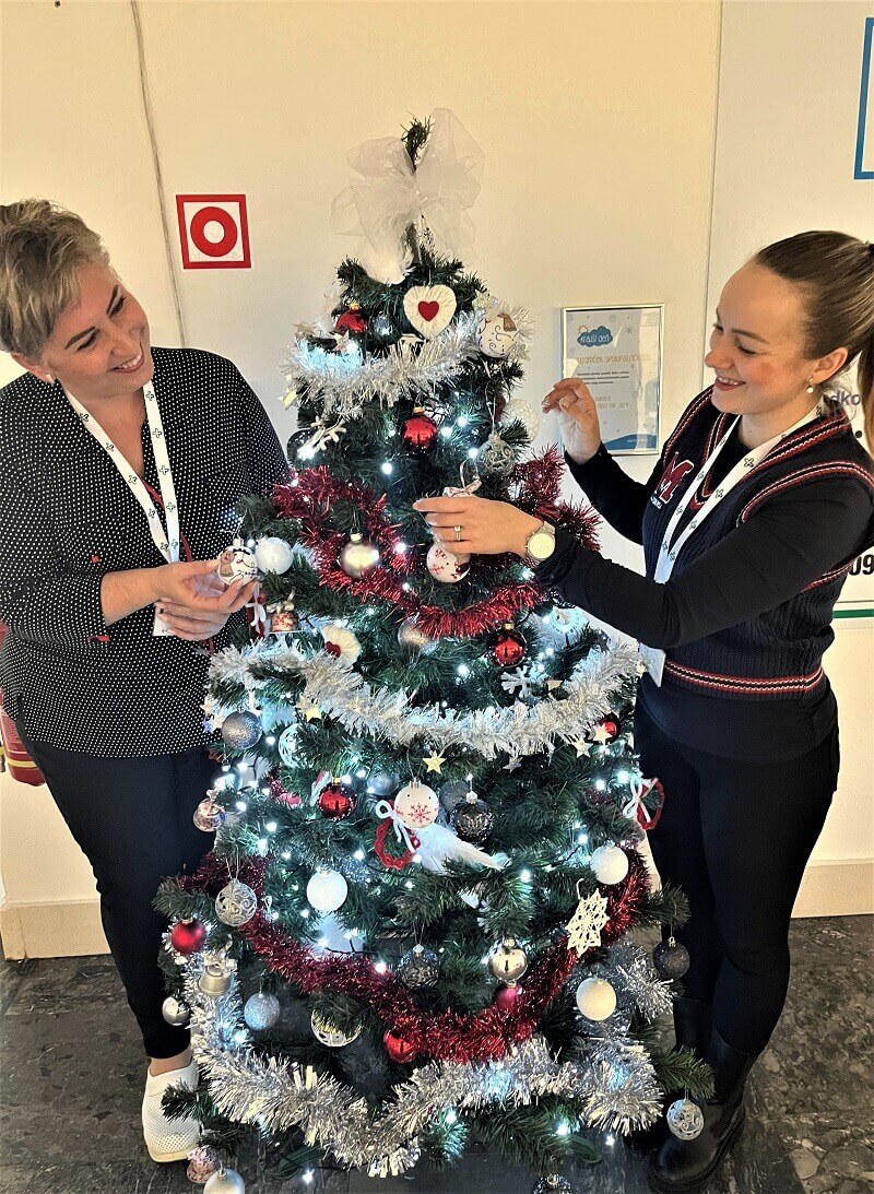 Tak ako každý rok, aj tento si dobrovoľníci v nemocniciach pripravili Stromček spolupatričnosti, ktorý zdobí vestibul pri recepcii. Skrášľujú ho vianočné ozdoby vyrobené našimi dobrovoľníkmi, koordinátorkou DC a hospitalizovanými pacientmi. Šperkom medzi nimi sú tento rok ručne maľované gule, ktoré pre nás pripravila dobrovoľníčka Katka.