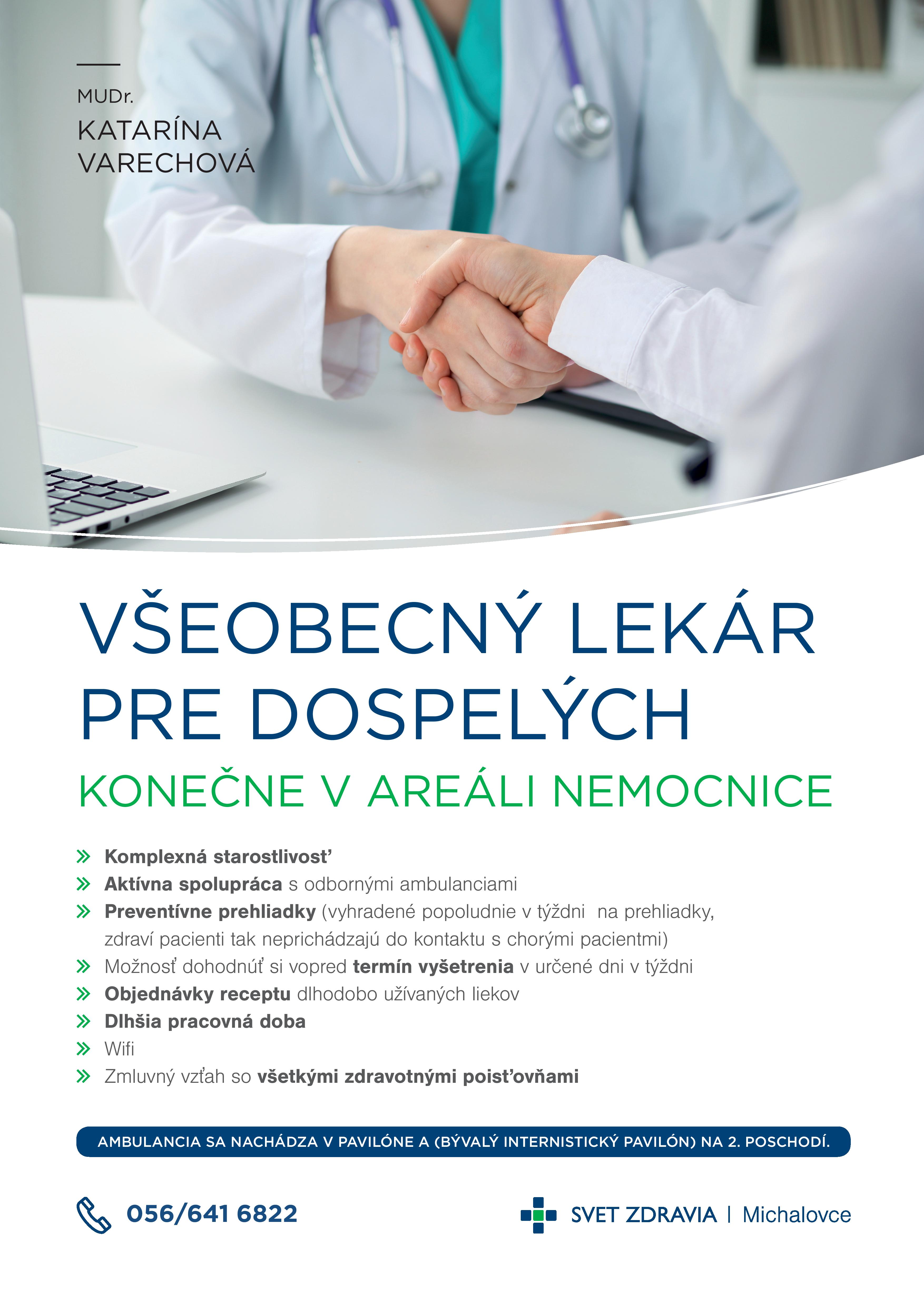„V ambulancii pacientom poskytujeme jednak komplexnú starostlivosť, ktorá sa týka prevencie, ale tiež aktívne spolupracujeme so špecialistami v oblasti liečebnej starostlivosti či so sociálnymi zložkami,“ hovorí lekárka ambulancie MUDr. Katarína Varechová.